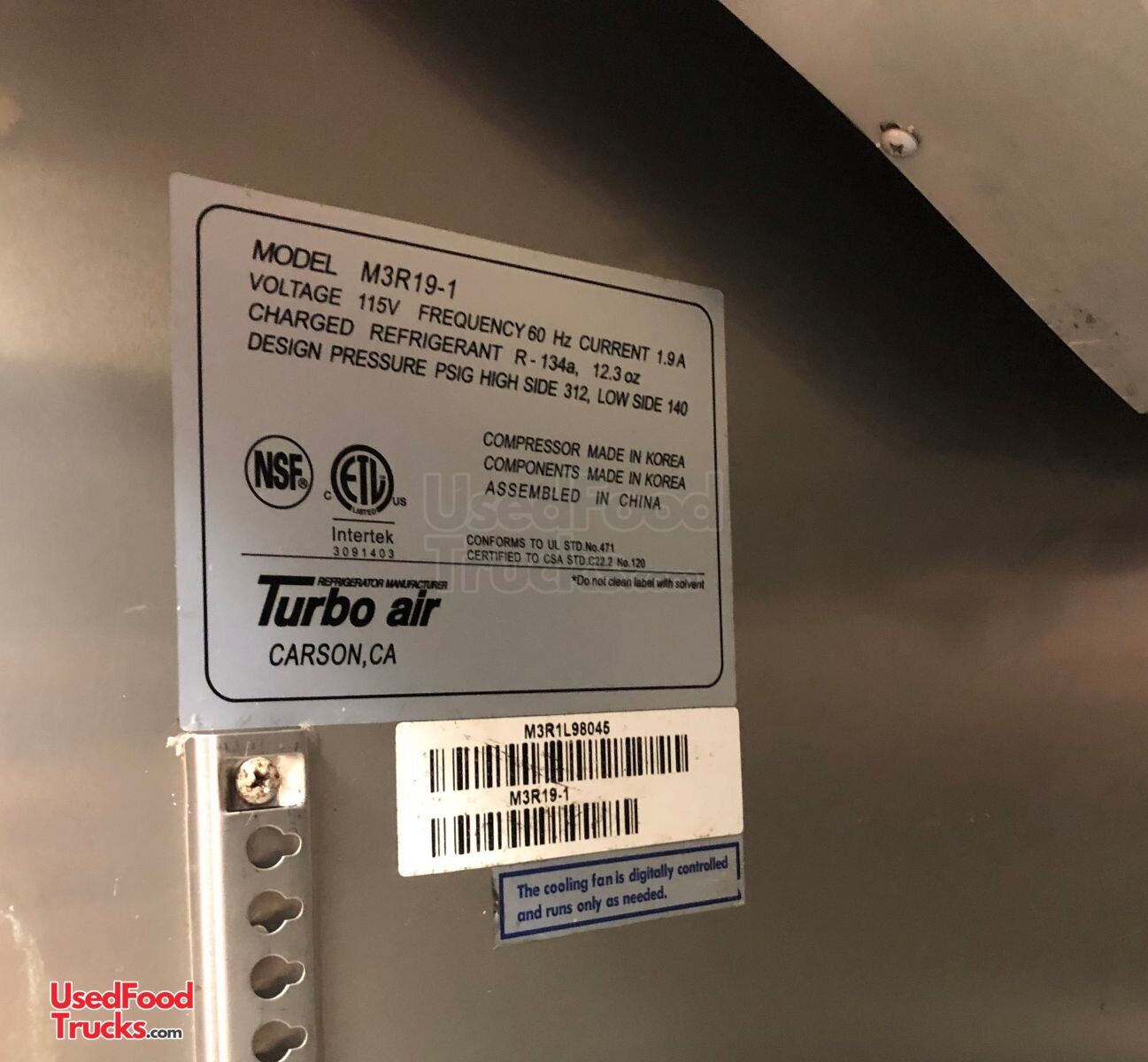 - Refrigerator: 25" Turbo Air 20 cu ft Model: M3R19-1 upright refrigerator