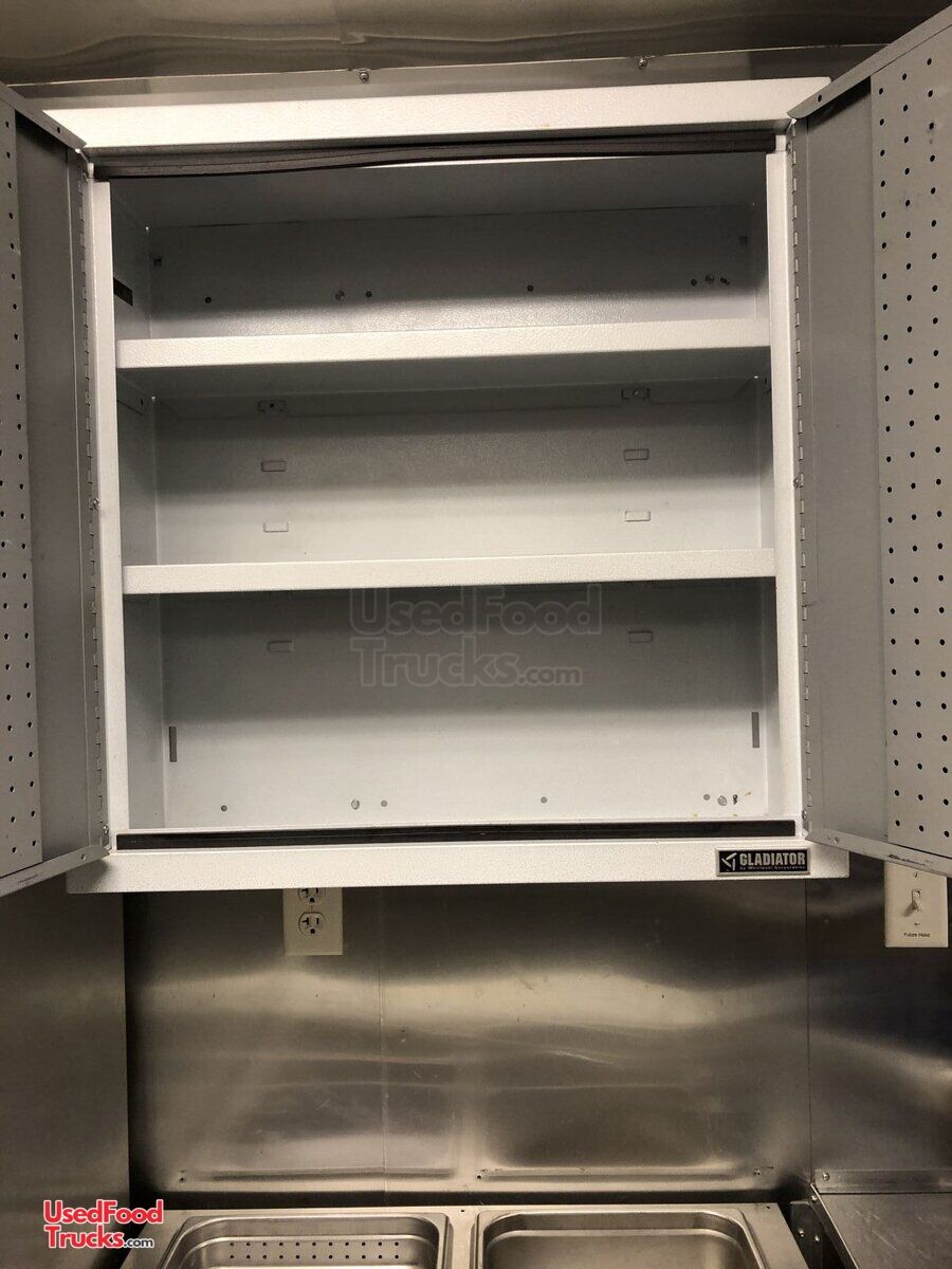- aluminum mill finish walls and ceiling; 8.5' x 4' dry storage compartment; 2 HD custom overhead storage shelf/trays