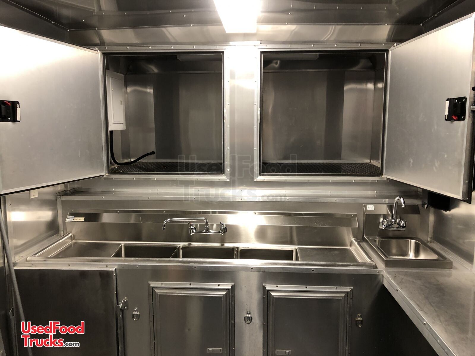 - Triple Sink: with side washboards and commercial faucets