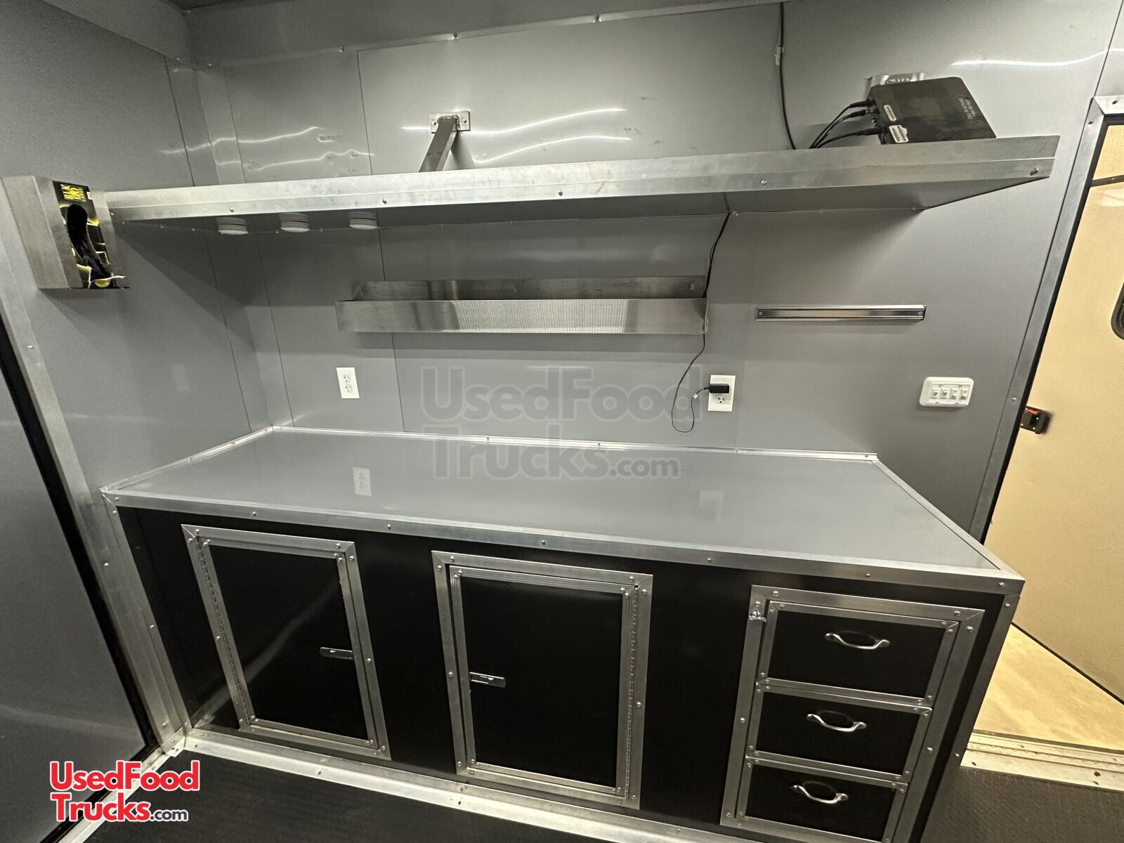 - Cabinets: Aluminum cabinets a drawers