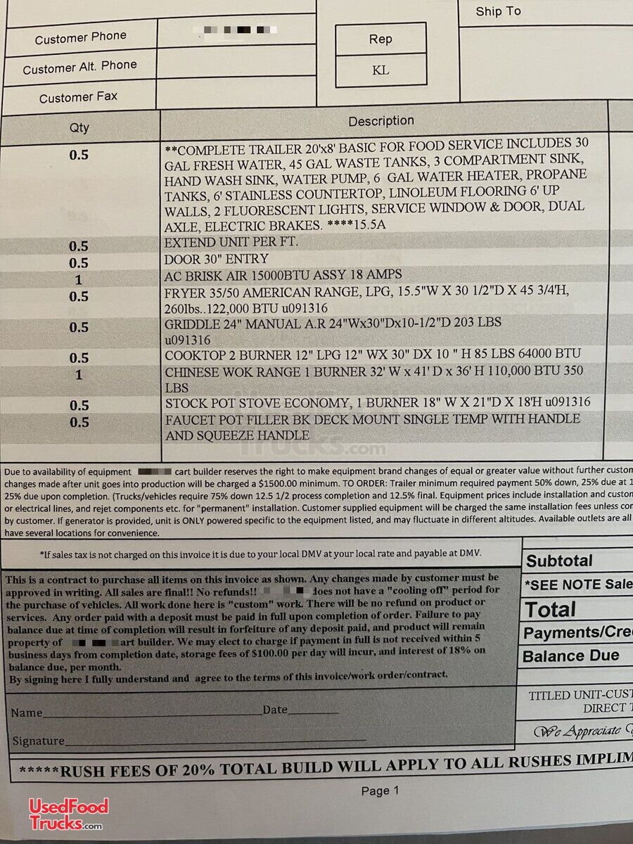 Fully-Loaded 2020 - 8' x 20' Kitchen Food Concession Trailer with Pro-Fire