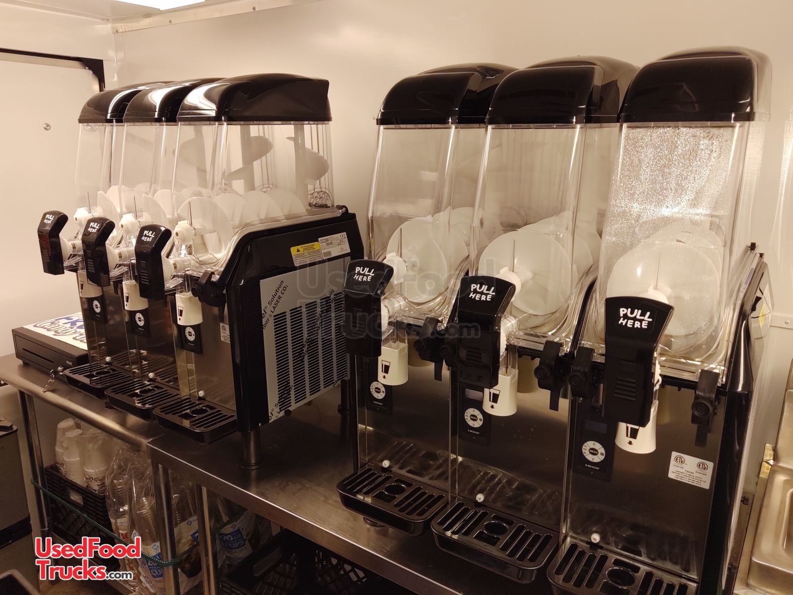 - Two slushy machines with triple tanks of 3.2 gallons each. Capacity for 6 flavors at one time. 3.2 gallons per flavor.