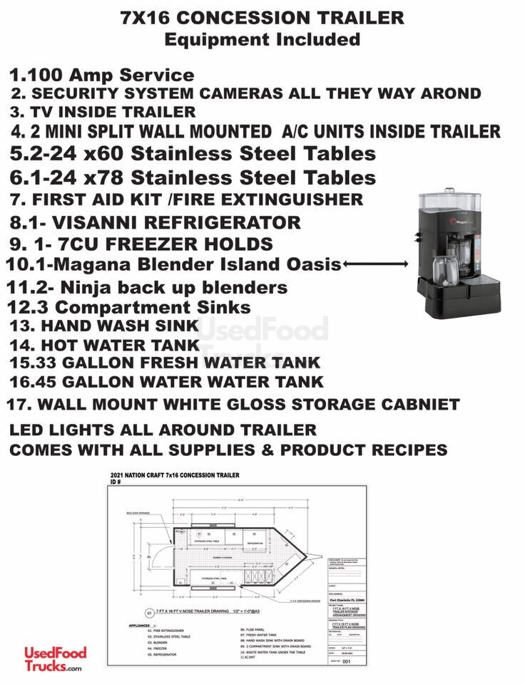 TURNKEY - 2021 7' x 16' Smoothie Concession Trailer NationCraft Beverage Trailer