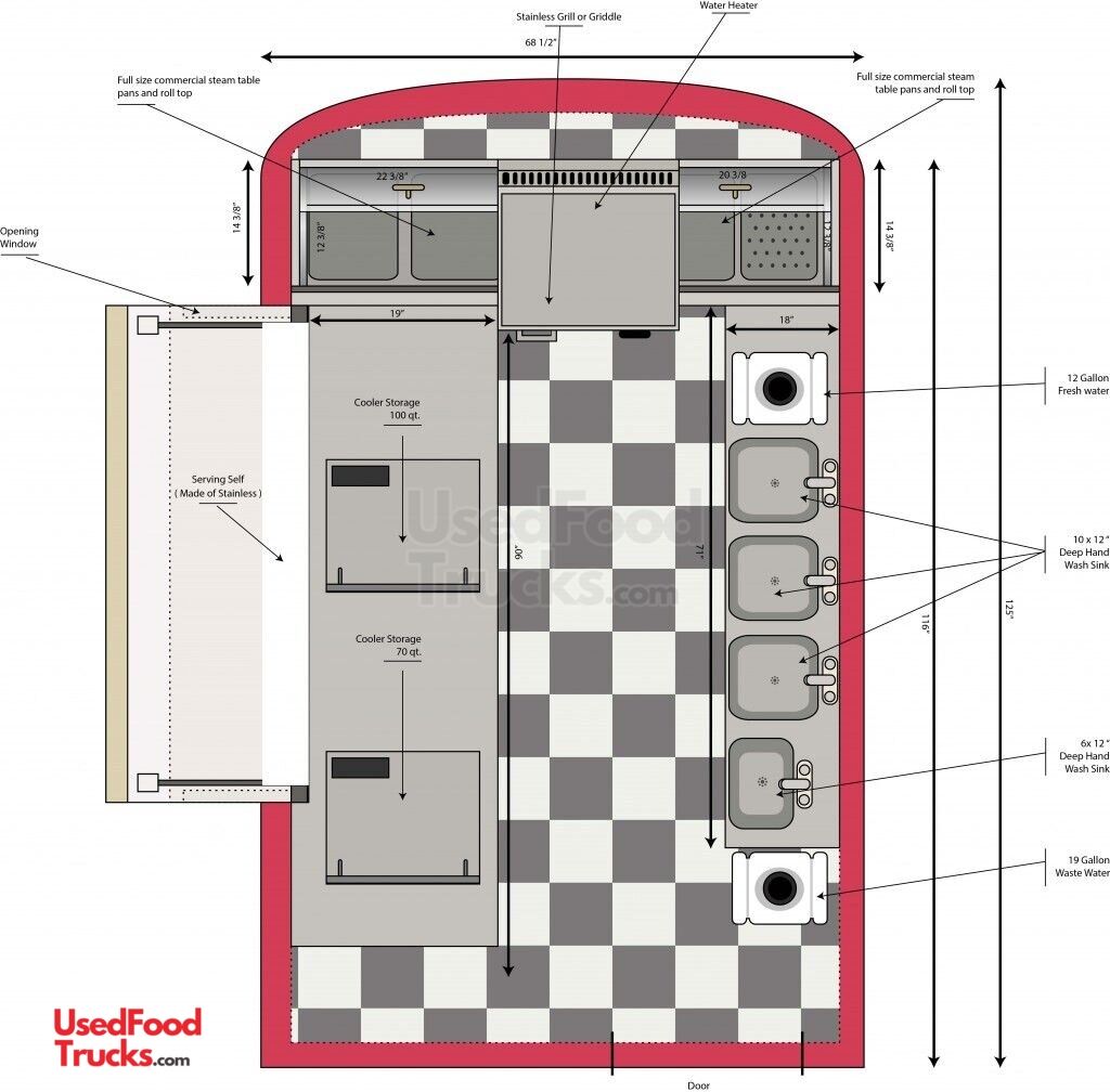 - Reach-In Upright Cooler: 100 quarts (2) built in (not upright)
