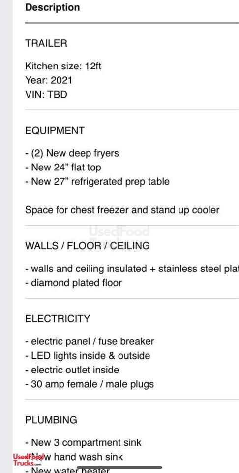 2022 8' x 12' Kitchen Food Concession Trailer with Fire Suppression System