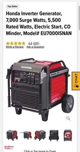 - Generator: watts 5500 honda EU7000