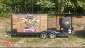2025 - 22' Barbecue Food Concession Trailer with BBQ Smoker Pit + Porch