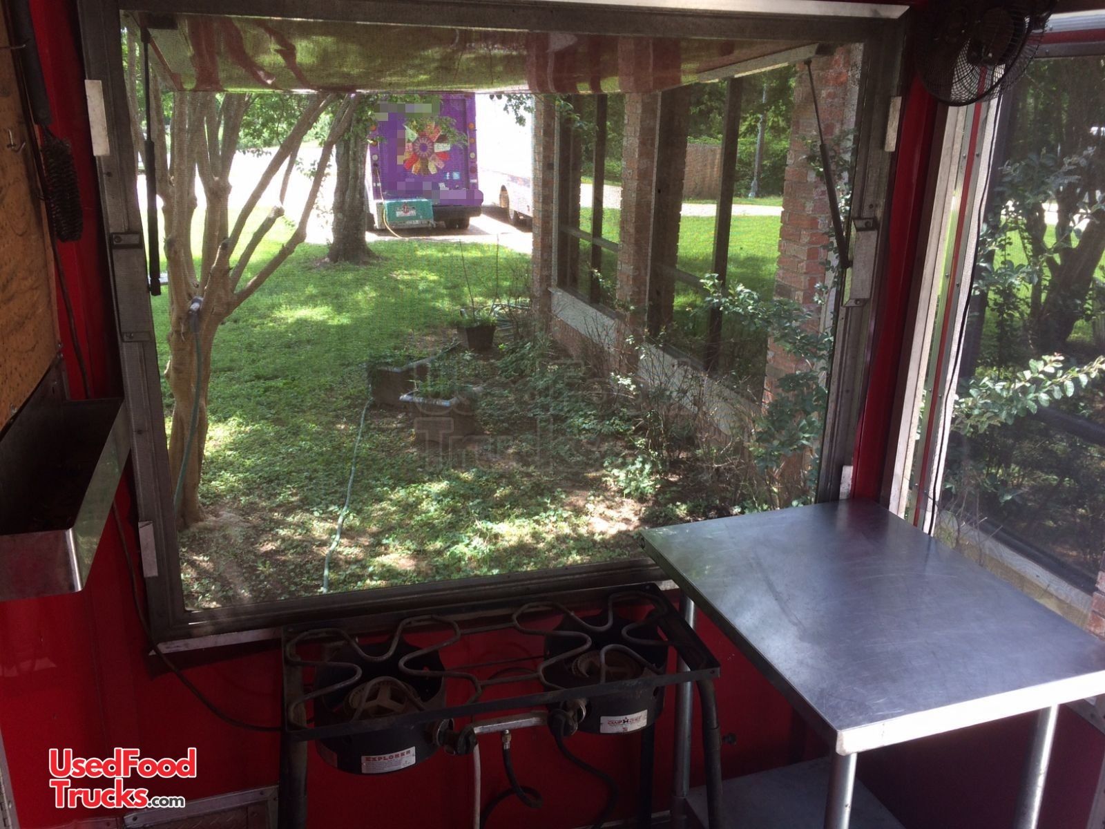 - Exhaust fan above grill that vents to outside the trailer