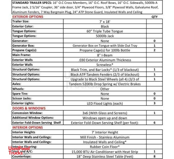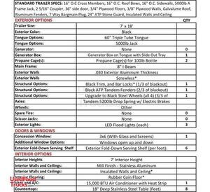 - Concession Window(s): 1 - 3' x 6'