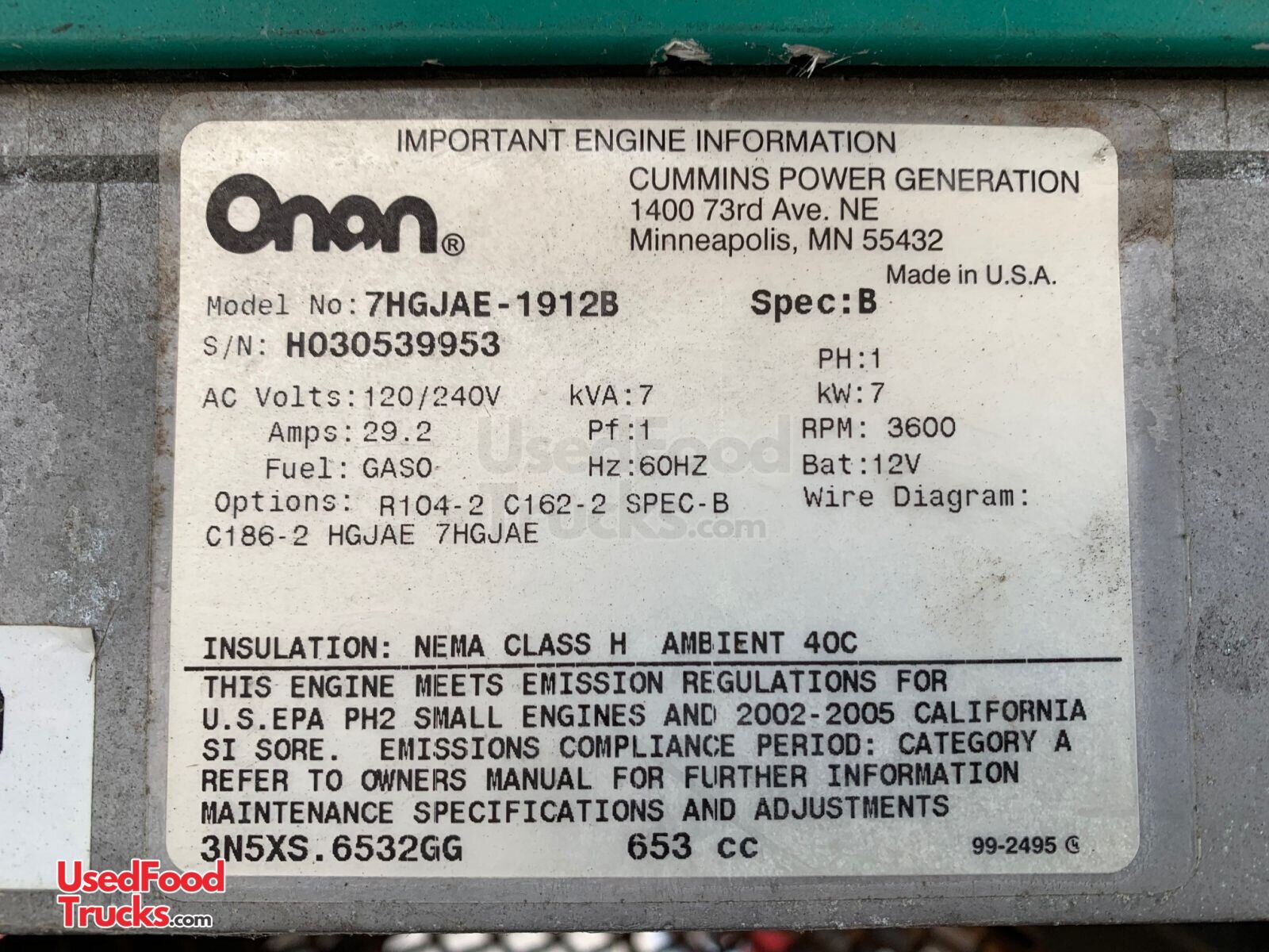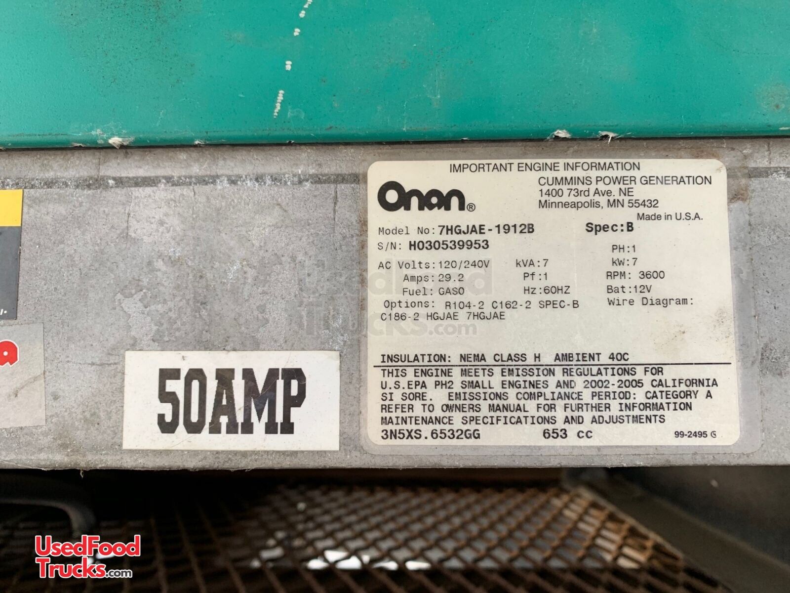 - Generator: (2) Onan CM7000 - 50 Amps each