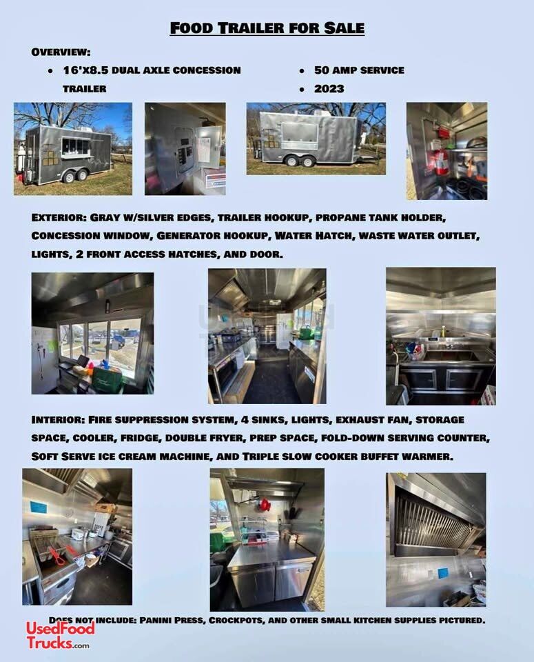 2023 8.5' x 16' Kitchen Food Concession Trailer with Fire Suppression System