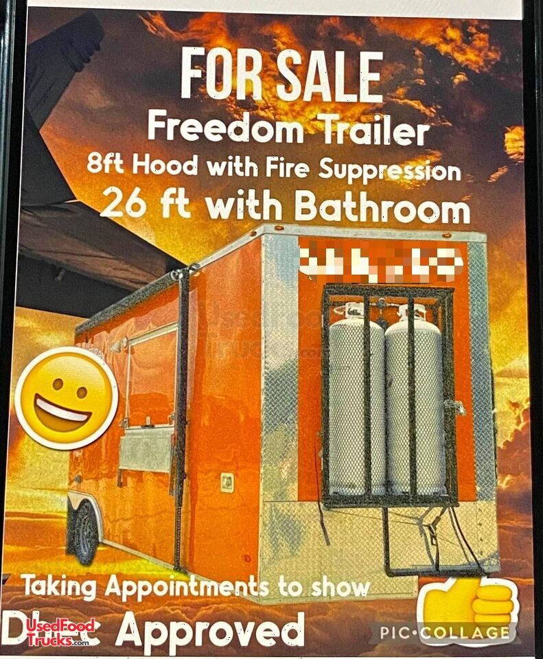 26' Kitchen Food Concession Trailer with Bathroom & Pro-Fire Suppression