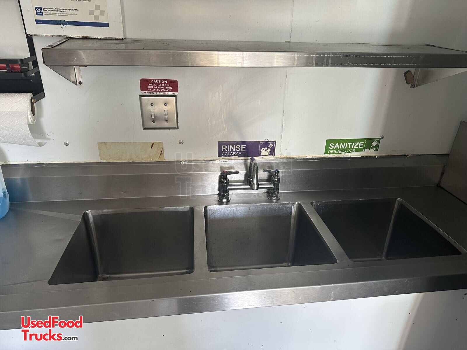 - First aid kit, hand soap dispenser, paper towel holder, and hygiene signage for compliance