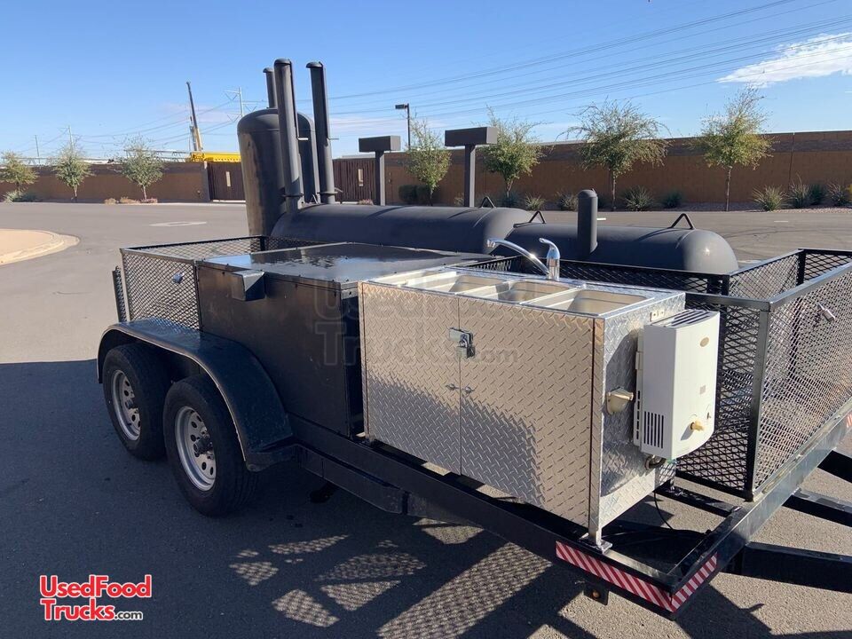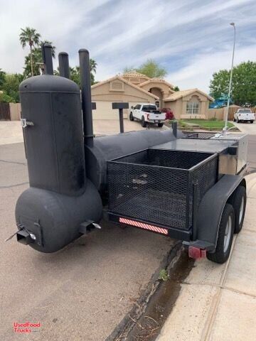 Used BBQ Tailgating Trailer / Ready to Grill Open Barbecue Smoker Trailer