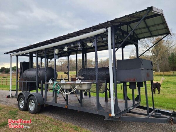 High Output Homemade 2-Pit Open BBQ Smoker Trailer / Mobile BBQ Rig