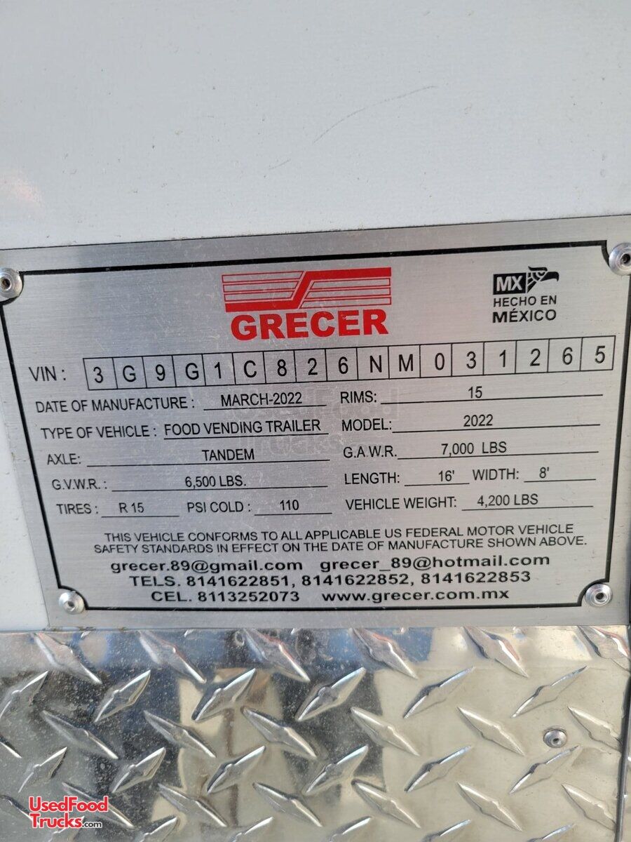 2022 7.5' x 16' Mobile Kitchen Street Food Concession Trailer
