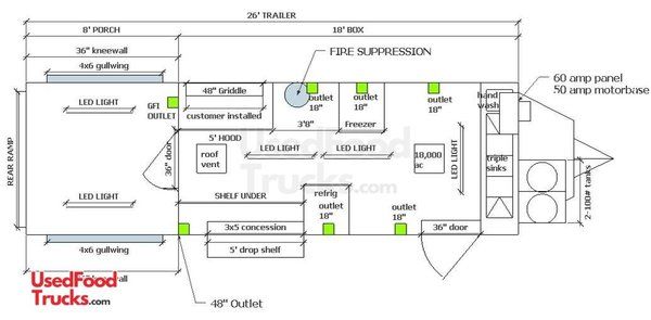 - Exhaust Hood: 6.5' wide, equipped with temp snap switch and emergency pull.