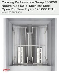 - Fryer(s): 2 CPG Model: FFOP50 50lb natural gas double basket fryers