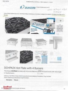- Stovetop: Dukers Model: DCHPA24 4 burners