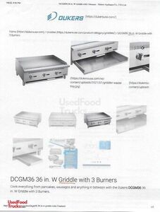 - Flatgrill: Dukers Model: DCGM36 36" griddle with 3 burners