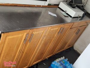 - Cabinets: 3 double door under serving window and countertop