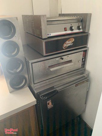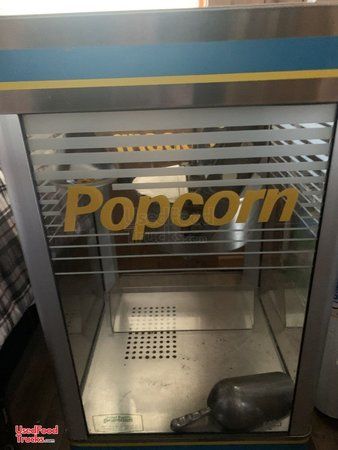 - nacho cheese warmer, beverage coolers-2, commercial popcorn machine, bun drawer, cookie display rack, bottle holding racks 2 for Sno cone mixes, insulated beverage dispensers 2 brand new, spare tire new, 3 station vegetable holder