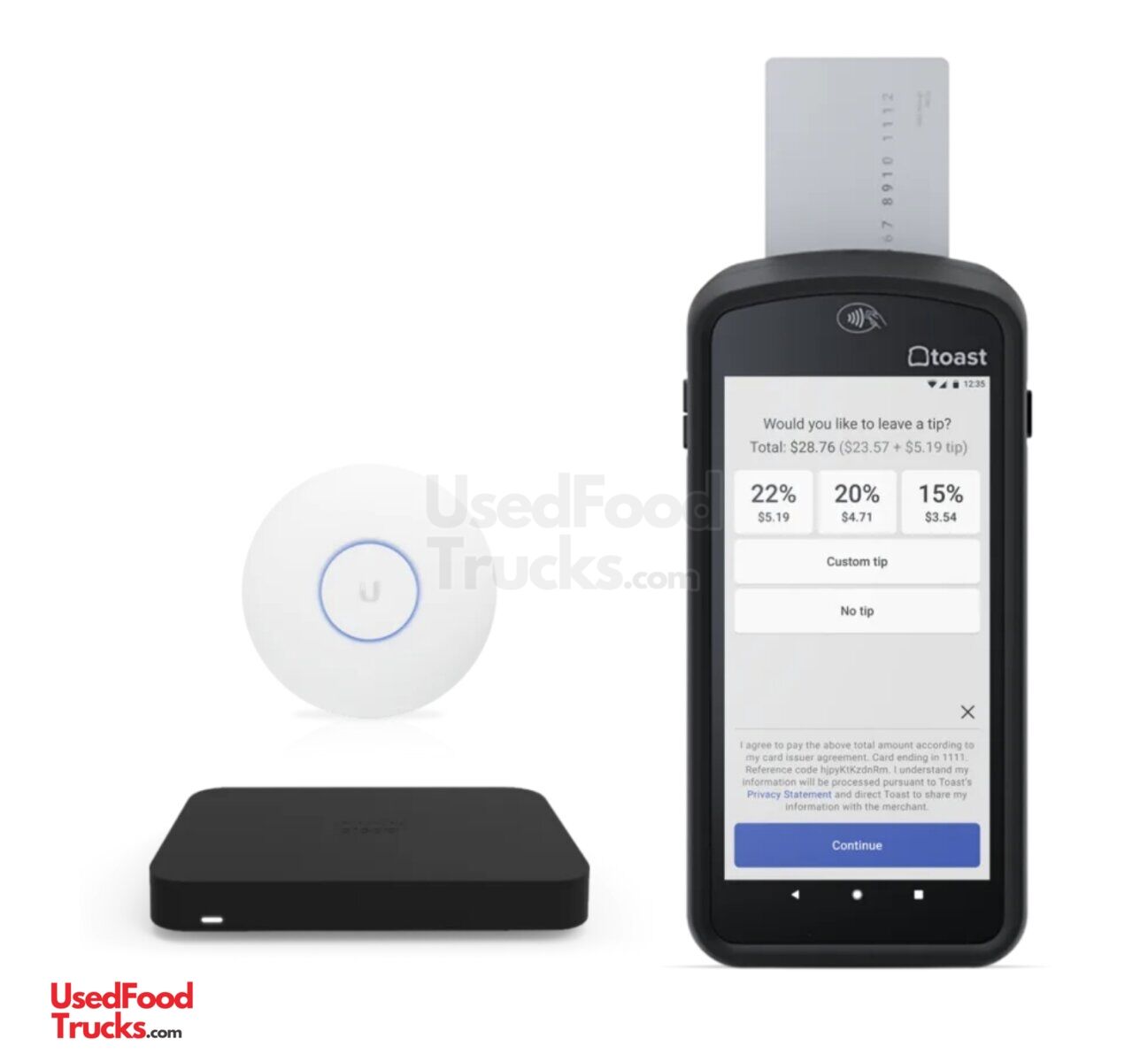 - POS System: Complete Toast payment system (handheld device, ticket printer,