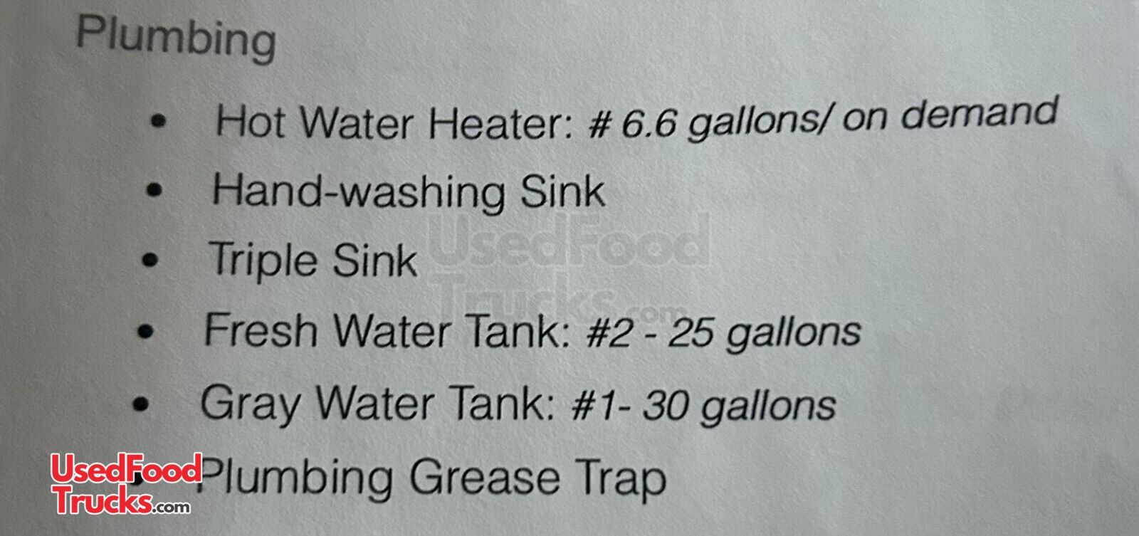 - Gray Water Tank: 30 Gallons