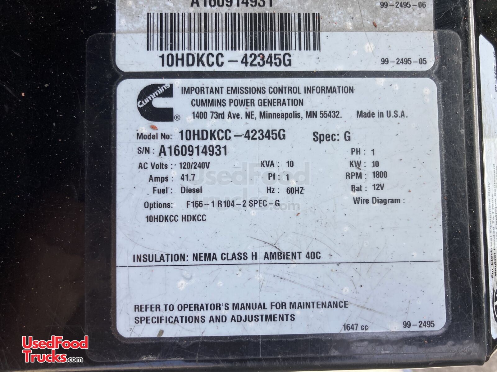 - Generator: Cummins Onan Model: 10HDKCC-42345G with 15k hours