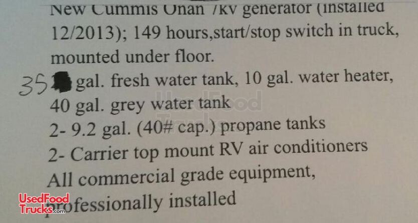 - Generator: Cummins Onan undermounted; 149 hrs; switch in truck