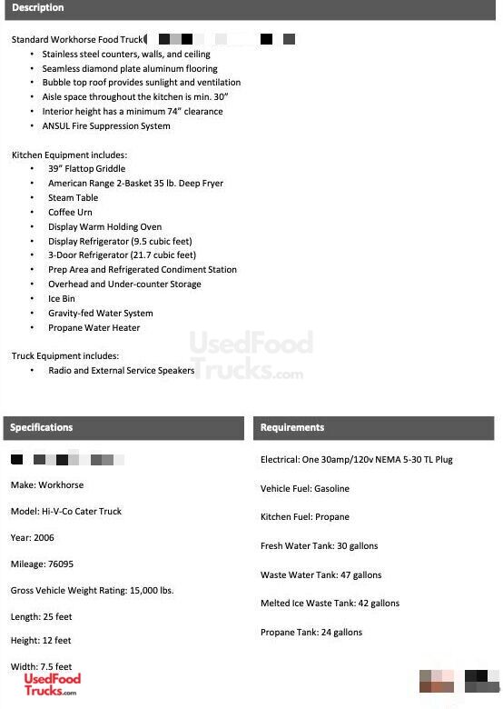 2006 Workhorse All-Purpose Food Truck with Fire Suppression System