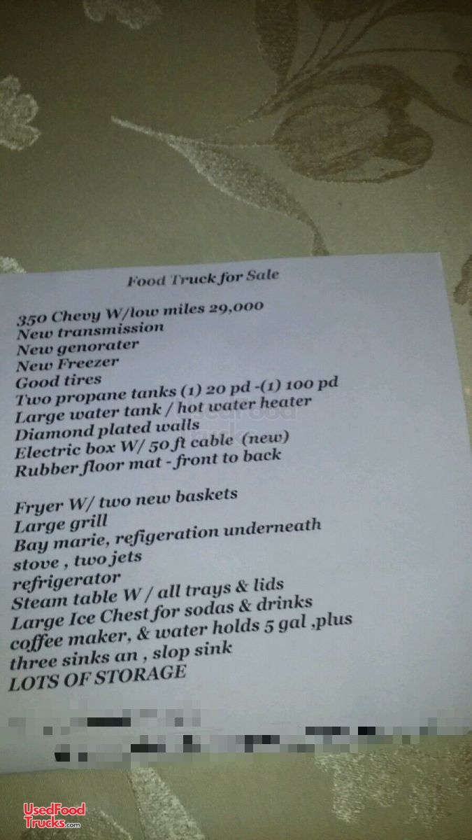 Low Mileage Chevrolet 350 Step Van Used Mobile Kitchen Food Truck