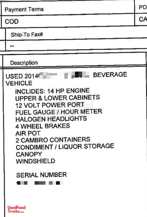 Ready to Roll 2014 Coffee and Beverage Vehicle / Used Mobile Beverage Cart