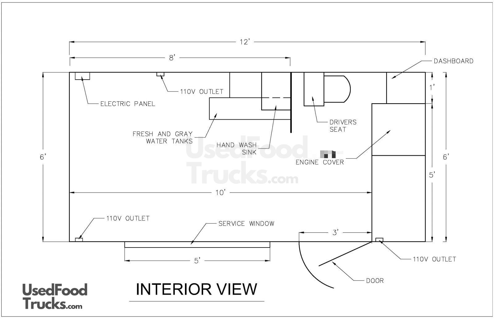 - Electrical Outlets: 3 interior 110v outlets