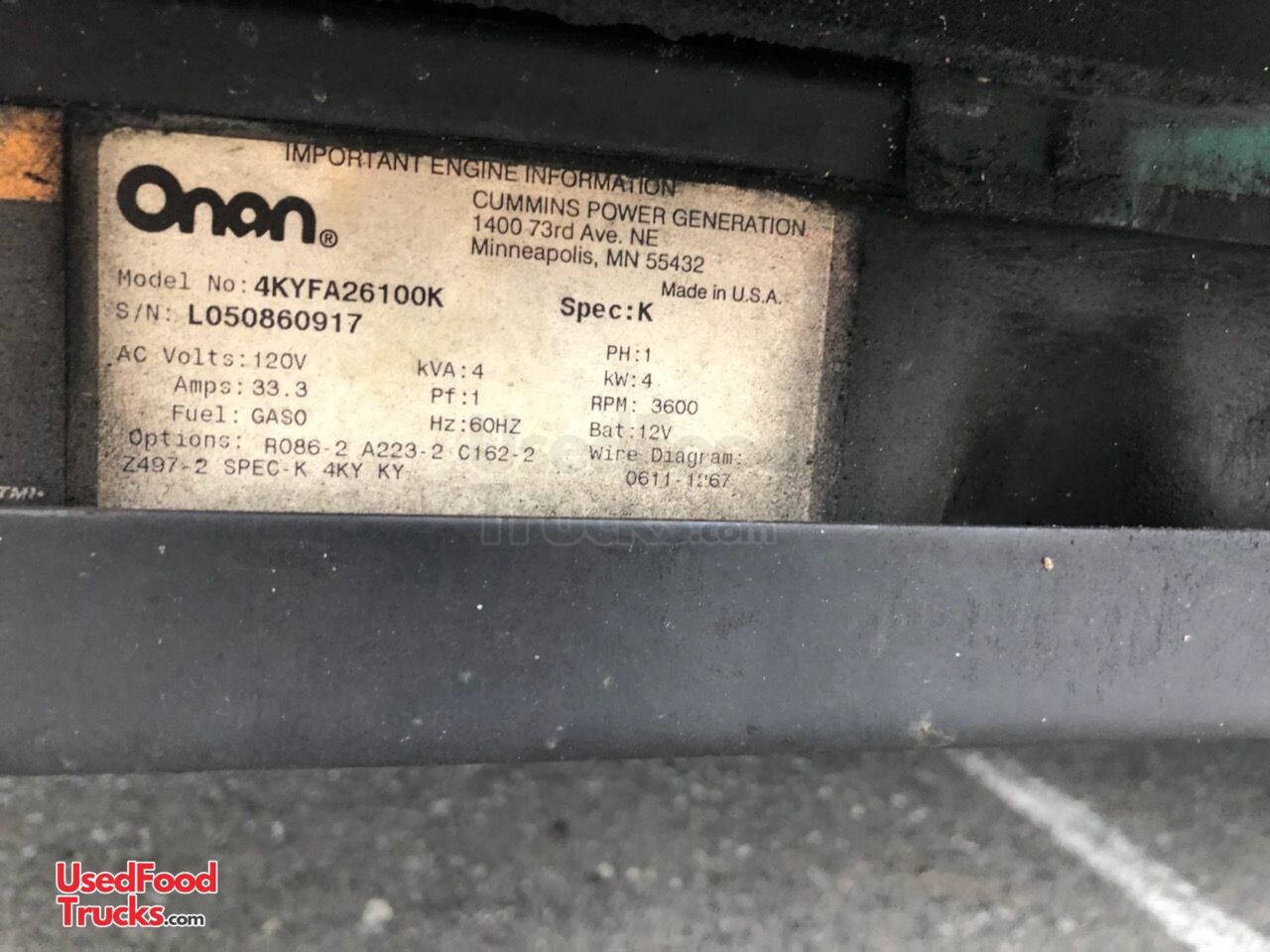 - Generator: Onan QG 4000 watts 33.3 amps AC on board gas RV generator CARB