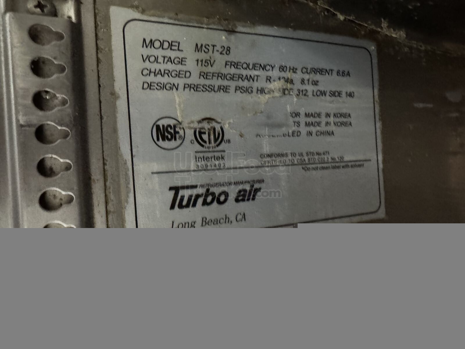 - Refrigerator: Turbo air